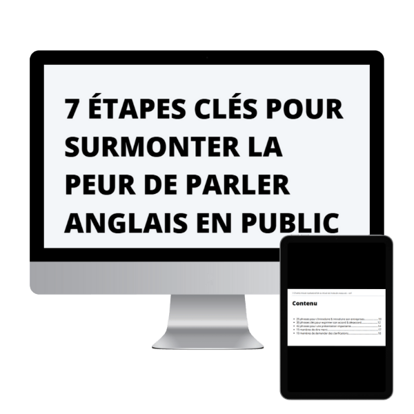 BONUS #1 : Guide "7 étapes pour surmonter sa peur de parler anglais" + Kit de 122 phrases clés professionnelles prêtes à l'emploi