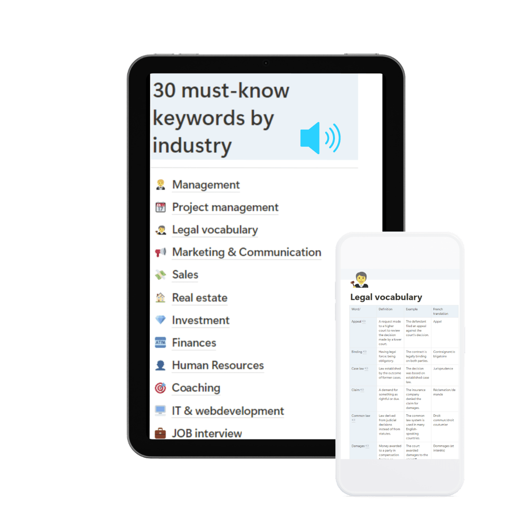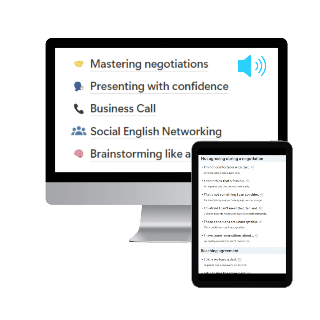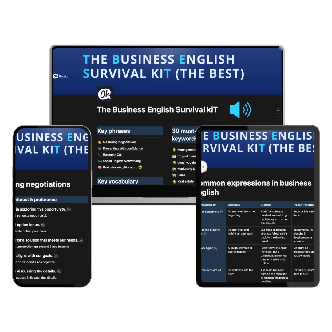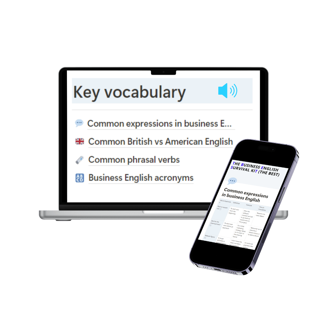 Le kit pratique pour enfin savoir quoi dire, comment le dire, et intervenir avec impact dans tes échanges professionnels en anglais.